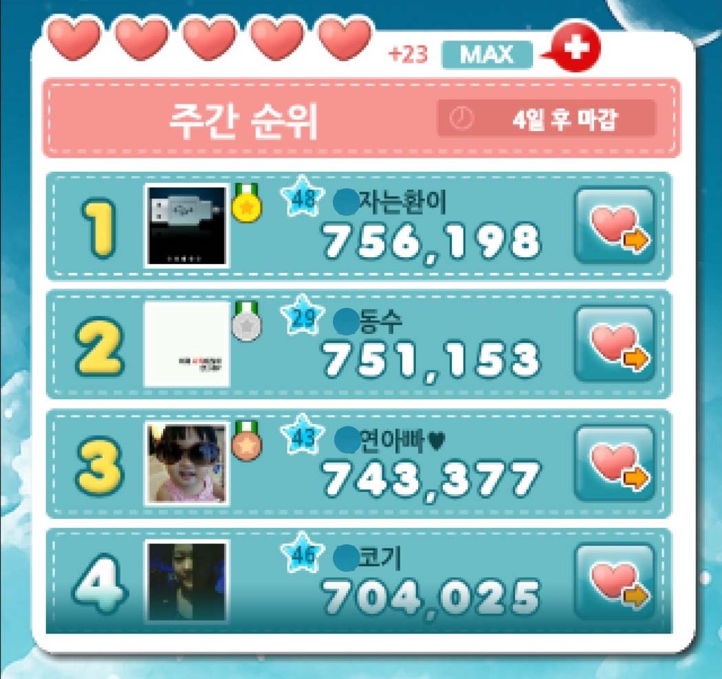 10/4 6시 벨킨스 애니팡 현재 순위 확인! | 관리자 | 2012-10-04 | 485 | |